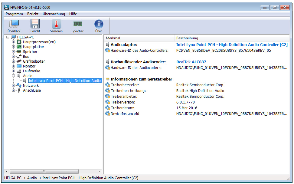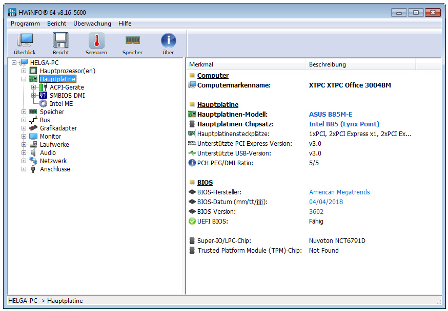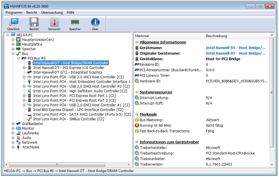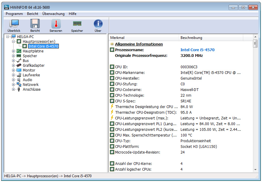 Verwenden Sie HWiNFO32 für Windows 32-Bit und HWiNFO64 für Windows 64-Bit.