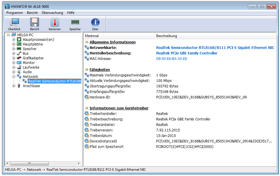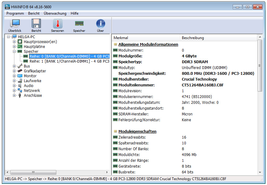 Mit dem für private Nutzung kostenlosen Hardware Diagnose Tool HWiNFO