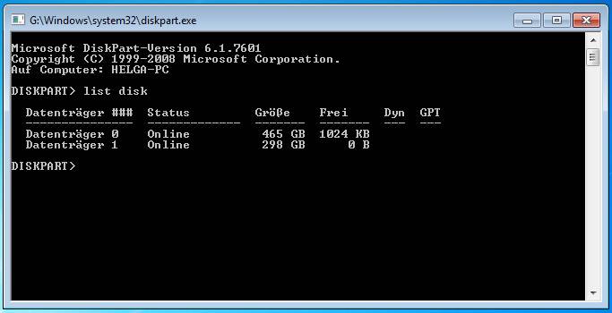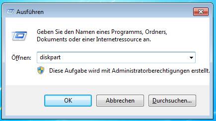 verwendet. Sie können nun diskpart mit einem