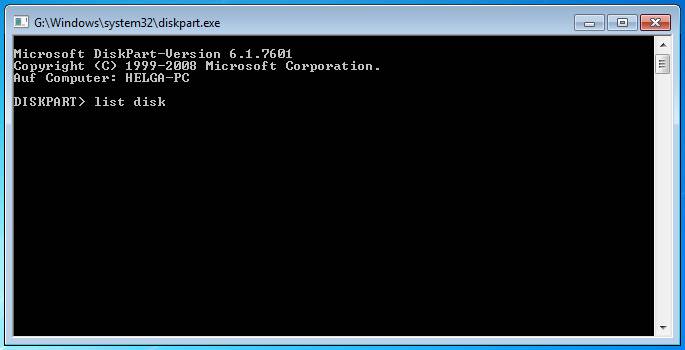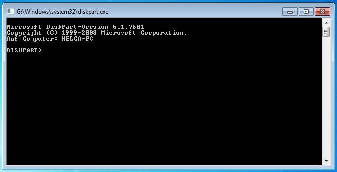 Dann öffnet sich das Kommandozeilenprogramm diskpart.exe.