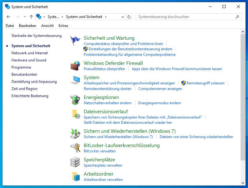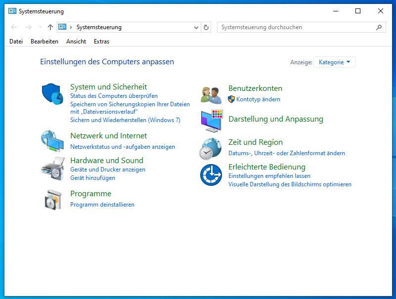 3.) In der Systemsteuerung mit "Anzeige: Kategorie" klicken Sie auf "System und Sicherheit".