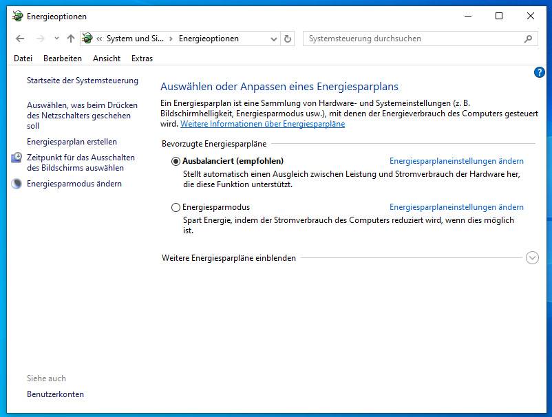 4.) Klicken Sie dann auf "Energieoptionen".