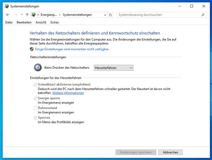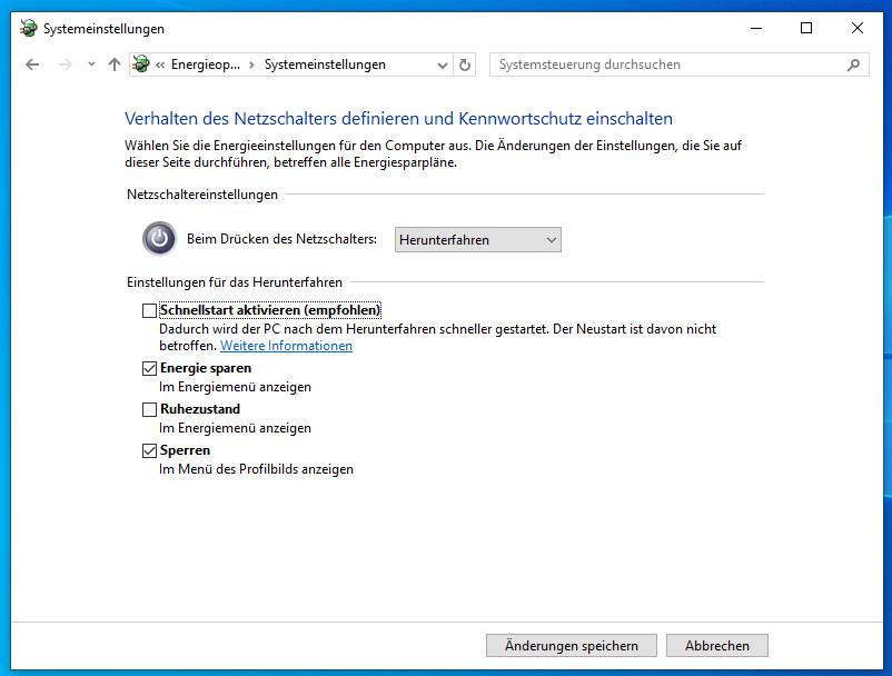 Die Lösung besteht im Deaktivieren der Schnellstart-Funktion.
