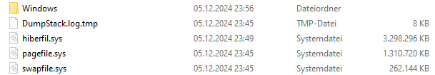 beziehungsweise der Partition, auf der Windows installiert ist. Die Größe von "hiberfil.sys"