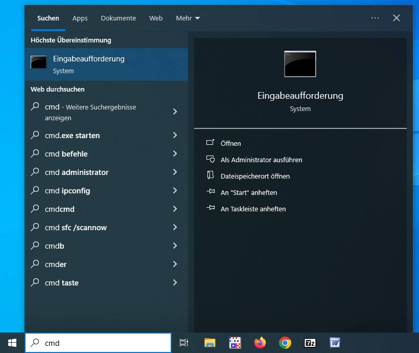 1.) Tippen Sie cmd in die Suchleiste.