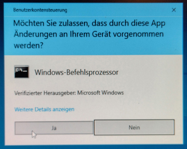 3.) Beim Fenster "Benutzerkontensteuerung" klicken Sie auf "Ja".