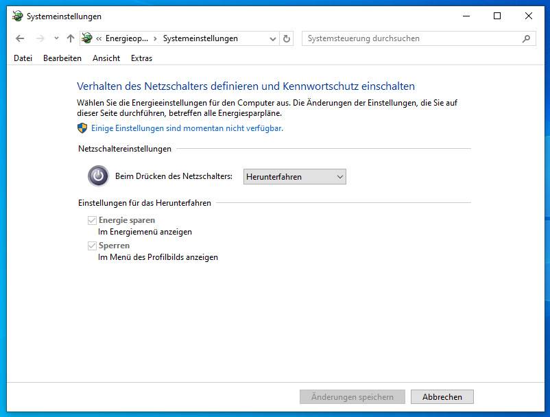 6.) Klicken Sie oben auf den Link "Einige Einstellungen sind momentan nicht verfügbar."