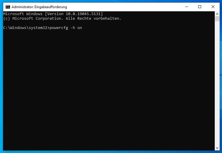 dann geben Sie powercfg -h on ein und drücken die Eingabetaste.