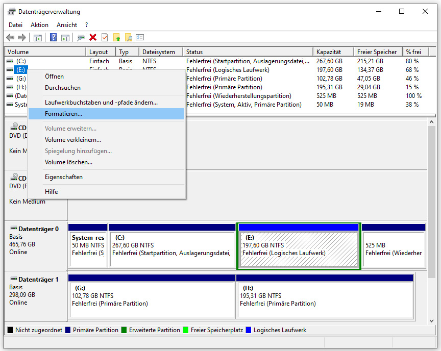 Machen Sie nun einen Rechtsklick auf die zu formatierende Partition