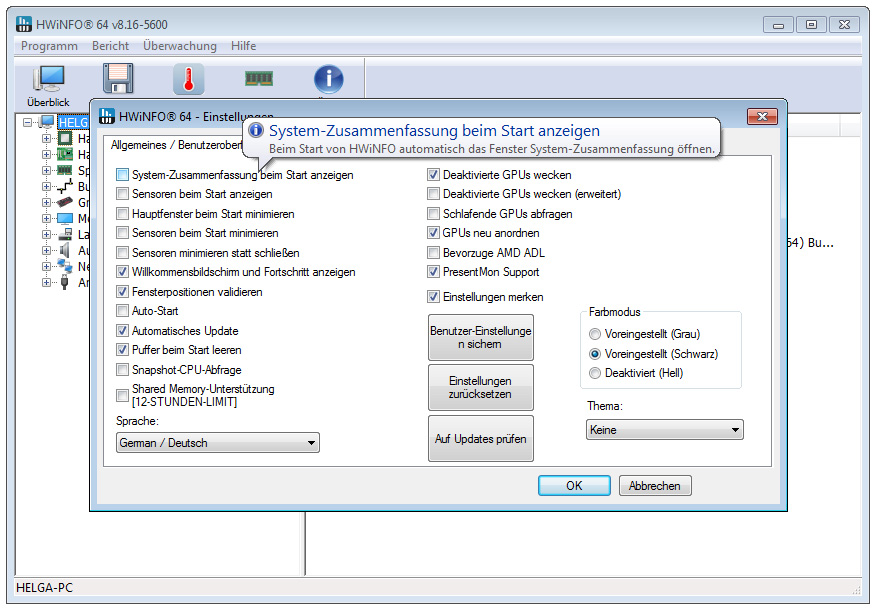 Ruhezustand deaktivieren und hierdurch die versteckte